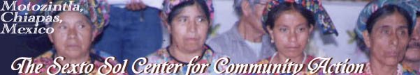 The Sexto Sol Center maintains that the women of the Sierra are "un potencial económico dormido" or a dormant economic force. We advocate for the full participation of women in all social and political activities. We have assisted women to organize productive cooperatives that allow them to contribute to the family economy. (See the article in our Coffee Crisis section).
